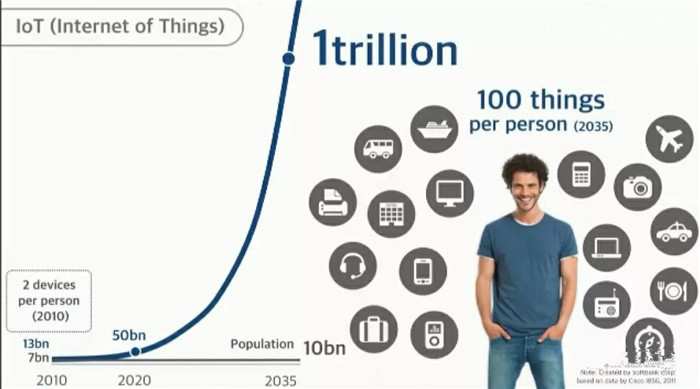 未來不止是你和物品的溝通,物品和物品間也會相互溝通。是的,物品間的相互溝通也會在物聯網的時代成為很普遍的事。物聯網的市場,到了2035年,規模將比現在大1億倍,那么你說,什么是未來?